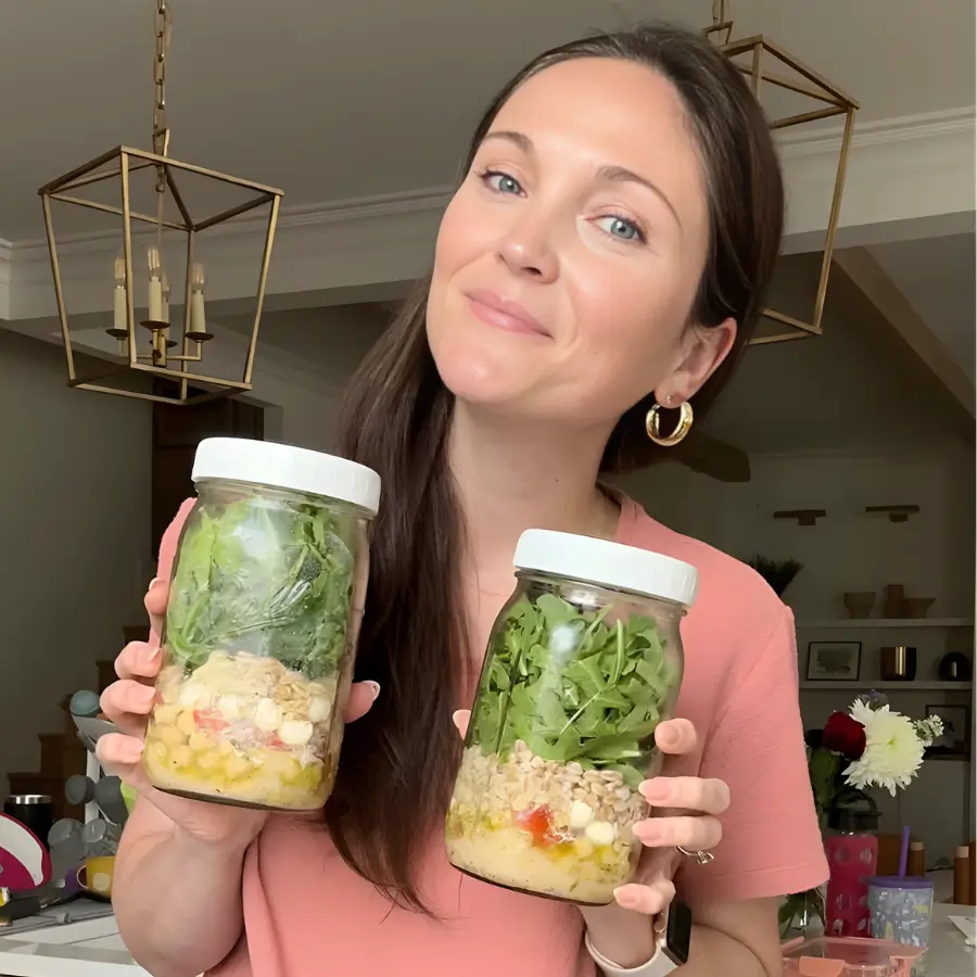 Quando montada corretamente seguindo o método das camadas que eu ensino, a salada dura de 5 a 7 dias fresquinha na geladeira. Isso significa que você prepara tudo no domingo e tem almoço ou jantar saudável pronto a semana toda. Zero desperdício, zero trabalho diário.